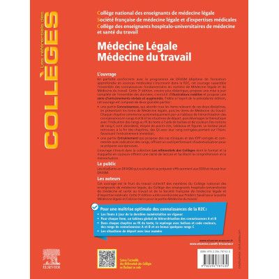 Cet ouvrage est le fruit du travail collectif des membres du Collège national des enseignants de Médecine légale, du Collège des enseignants hospitalo-universitaires de Médecine et Santé au travail et de la Société française de Médecine légale et d'expertise médicale.