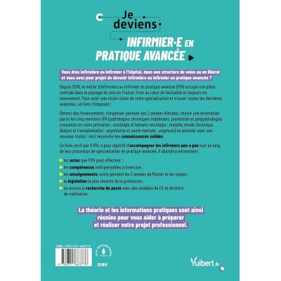 Ce livre, écrit par 8 IPA, a pour objectif d’accompagner les infirmiers pas à pas tout au long de leur processus de spécialisation en pratique avancée. Il abordera notamment :