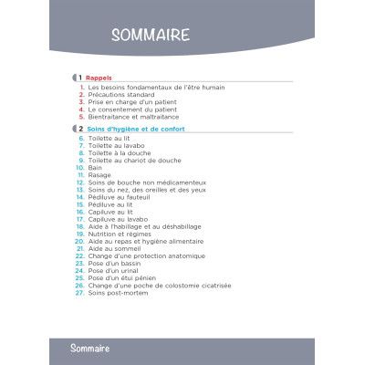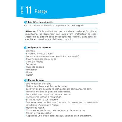 + de 110 fiches mémos illustrées et mises à jour des dernières techniques de soins.Un ouvrage pour réviser l'essentiel du module : des rappels sur les fondamentaux.Des fiches pour chaque technique : soins d’hygiène et de confort, observation et surveillance de l’état clinique, soins liés aux dispositifs médicaux ou d’appareillage, prise en charge d’un opéré et aide aux soins, principes d’ergonomie et de manutention, règles de sécurité et prévention des risques, autour du soin, traitement des informations…De nombreuses images en couleurs pour illustrer des situations concrètes. Un format pratique pour réviser partout facilement !