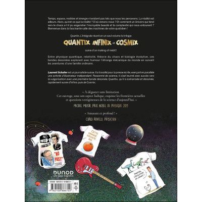 Quantix, L'Intégrale réunit en un seul volume la trilogie Quantix, Infinix et Cosmix, suivie d'un making of inédit !Entre physique quantique, relativité, théorie du chaos et Biologie évolutive, ces bandes dessinées explorent avec humour l'étrange mécanique du monde en suivant les aventures d'une famille ordinaire.« À déguster sans limitation. Cet ouvrage, sous son aspect ludique, esquisse les frontières actuelles et questions vertigineuses de la Science d’aujourd’hui. » Michel Mayor, Prix Nobel de Physique 2019.« Amusant et fascinant ! » Carlo rovelli, physicien.