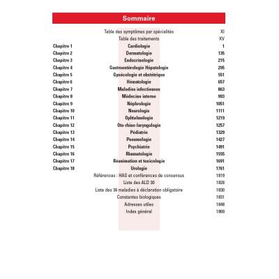 Cette édition contient : plus de 300 symptômes classés en 18 spécialités - 700 traitements détaillés - 100 algorithmes décisionnels - un sommaire général et un index global - des tables par symptômes, traitements et spécialités - des données pratiques (ALD 30, maladies à déclaration obligatoire, constantes biologiques, adresses à connaître, etc.).