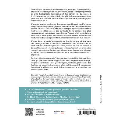 L’auteure propose une lecture des causes possibles entre « efficience » et « particularités psychologiques », en invalidant au passage quelques clichés tenaces : tous les surdoués ne sont pas hypersensibles et tous les hypersensibles ne sont pas surdoués. Ils ne sont pas non plus nécessairement inadaptés ou en souffrance. Faire de telles assimilations est la preuve d’une grande méconnaissance de la diversité humaine et des multiples facteurs qui peuvent influer sur la construction d’un individu.