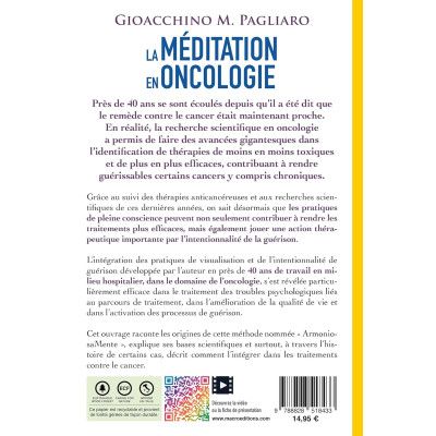 La méditation recrée l'équilibre et l'harmonie dans le système énergétique, mental et physique du corps. Pour cette raison, de brillants médecins ont étudié les avantages qu'elle produisait dans le domaine de l'Oncologie pendant le traitement. Dans cet ouvrage, vous découvrirez comment la méditation agit sur le plan énergétique et mental, en s'intégrant aux traitements contre le cancer et en les rendant plus efficaces. Près de 40 ans se sont écoulés depuis qu'il a été dit que le remède contre le cancer était maintenant proche. En réalité, la recherche scientifique en Oncologie a permis de faire des avancées gigantesques dans l'identification de thérapies de moins en moins toxiques et de plus en plus efficaces, contribuant à rendre guérissables certains cancers y compris chroniques. Grâce au suivi des thérapies anticancéreuses et aux recherches scientifiques de ces dernières années, on sait désormais que les pratiques de pleine conscience peuvent non seulement contribuer à rendre les traitements plus efficaces, mais également jouer une action thérapeutique importante par l'intentionnalité de la guérison. L'intégration des pratiques de visualisation et de l'intentionnalité de guérison développée par l'auteur en près de 40 ans de travail en milieu hospitalier, dans le domaine de l'Oncologie, s'est révélée particulièrement efficace dans le traitement des troubles psychologiques liés au parcours de traitement, dans l'amélioration de la qualité de vie et dans l'activation des processus de guérison. Cet ouvrage raconte les origines de cette méthode nommée " Armonio-saMente ", explique ses bases scientifiques et surtout, à travers l'histoire de certains cas, décrit comment l'intégrer dans les traitements contre le cancer.