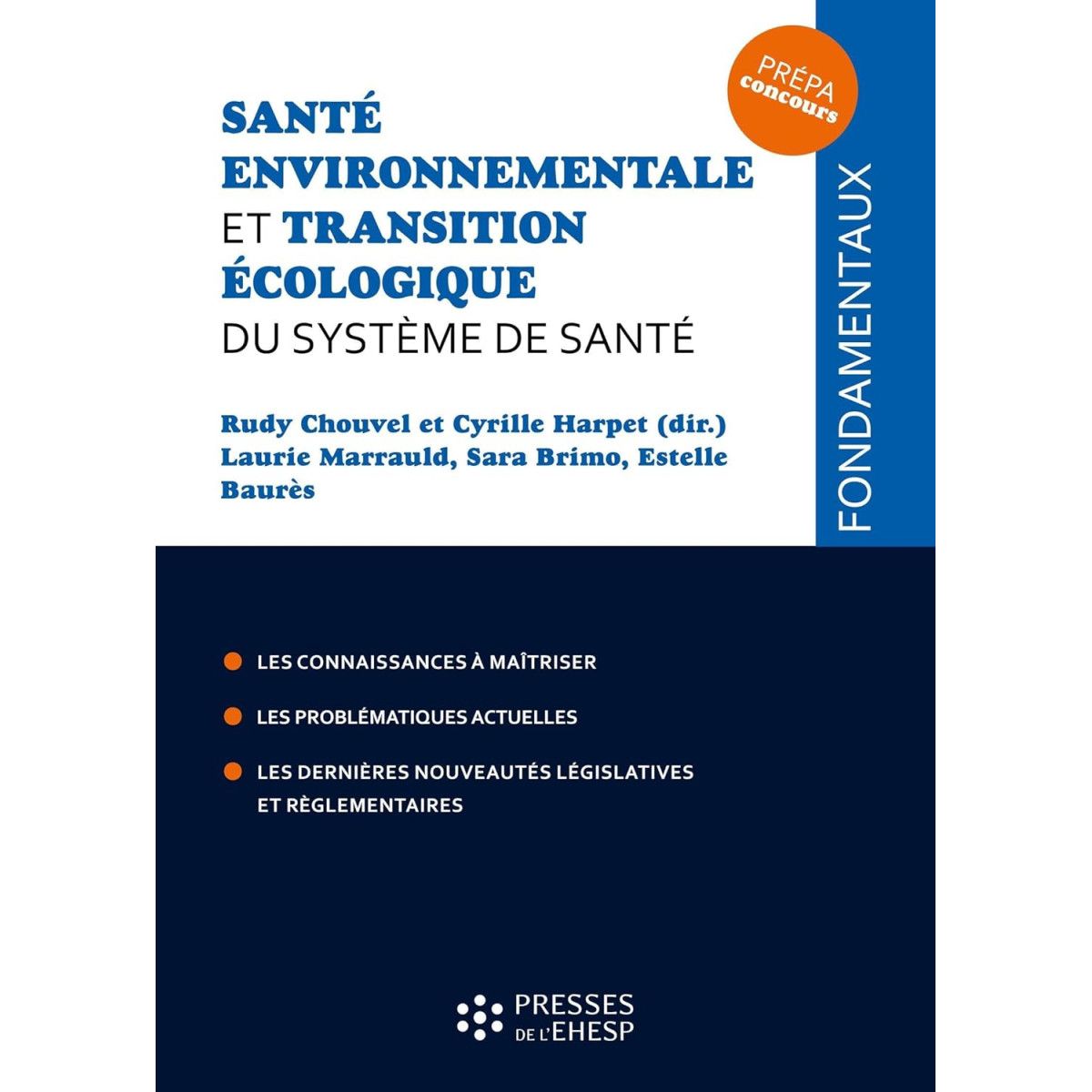La santé environnementale comme la transition écologique, désormais au programme des épreuves des concours de l'École des hautes études en Santé publique (EHESP), ne peuvent être écartées du fonctionnement du système de santé et des établissements et structures qui le composent. En leur fournissant des clés de compréhension et des repères pour penser la santé dans une perspective durable, cet ouvrage s'adresse aux étudiants préparant les concours de l'EHESP. Il intéressera également les professionnels de santé soucieux d'intégrer les dimensions environnementales dans leurs pratiques, leurs décisions et leurs engagements et, plus largement, celles et ceux qui souhaitent conjuguer expertise sanitaire et responsabilité écologique.
