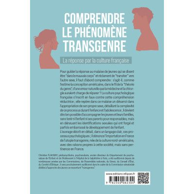 Dans un style simple et accessible, ce livre présente les thèses divergentes qui caractérisent chacune des cultures, montrant comment la notion de « genre », spécifique à la société des États-Unis, s’applique mal à la société française. La « transidentité », est-ce une anomalie du corps ou une production de la vie imaginaire ? L’option choisie dicte une approche visant à soulager le mal-être de se sentir « dans le mauvais corps ».