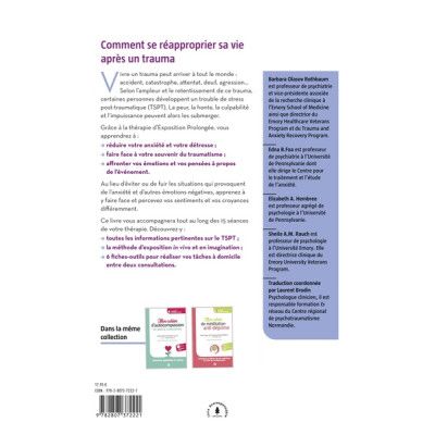 Edna B. Foa est professeur de Psychiatrie à l’Université de Pennsylvanie dont elle dirige le Centre pour le traitement et l’étude de l’anxiété.Barbara Olasov Rothbaum est professeur de Psychiatrie et vice-présidente associée de la recherche clinique à l’Emory School of Medicine, ainsi que directrice du Emory Healthcare Veterans Program et du Trauma and Anxiety Recovery Program.Elizabeth A. Hembree est professeur agrégé de Psychologie à l’Université de Pennsylvanie.Sheila A.M. Rauch est professeur de Psychologie à l’Université Emory. Elle est directrice clinique du Emory University Veterans Program.