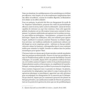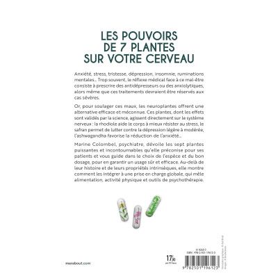 Anxiété, stress, tristesse, dépression, insomnie, ruminations mentales... Trop souvent, le réflexe médical face à ce mal-être consiste à prescrire des antidépresseurs ou des anxiolytiques, alors même que ces traitements devraient être réservés aux cas sévères.Or, pour soulager ces maux, les neuroplantes offrent une alternative efficace et méconnue. Ces plantes, dont les effets sont validées par la Science, agissent directement sur le système nerveux : la rhodiole aide le corps à mieux résister au stress, le safran permet de lutter contre la dépression légère à modérée, l'ashwagandha favorise la réduction de l'anxiété...Marine Colombel, psychiatre, dévoile les sept plantes puissantes et incontournables qu'elle préconise pour ses patients et vous guide dans le choix de l'espèce et du bon dosage, pour en garantir un usage sûr et efficace. Au-delà de leur histoire et de leurs propriétés intrinsèques, elle montre comment les intégrer à une prise en charge globale, qui mêle alimentation, activité physique et outils de Psychothérapie.