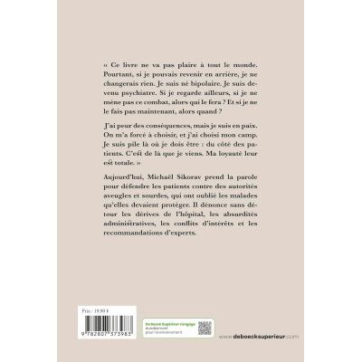 Michaël Sikorav est psychiatre et patient. Maniaco-dépressif et TDAH. Frappé par la maladie mentale, il a passé la moitié de sa vie dans son lit, la suivante à rattraper le temps perdu. Après avoir terminé son Internat, il a pris un poste à l’hôpital psychiatrique où il s'est vite senti enfermé dans un système qui l’étouffait autant que les patients. Il a alors choisi de s’installer en libéral. Mais là aussi, il a retrouvé les mêmes problèmes. Ses patients et lui se sont vus maltraités par des institutions aveugles et sourdes, et lui-même a été victime de discrimination et de diffamation par des autorités qui ont oublié leur rôle, leur fonction et les malades qu’elles devaient défendre. Aujourd'hui, il décide de prendre la parole pour défendre la Psychiatrie et, surtout, les patients qui souffrent de l'état où elle se trouve.