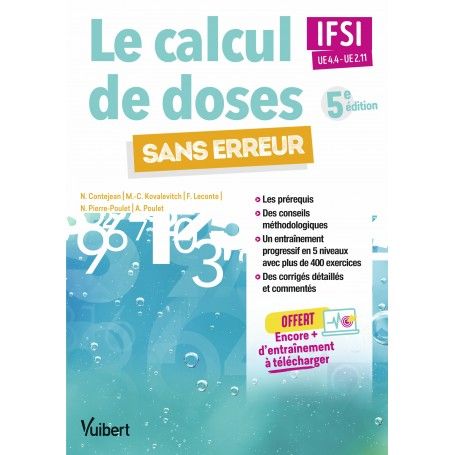 Le manuel "tout-en-un" des étudiants infirmiers pour réussir ses calculs de doses. Etudiants en IFSI, ce livre de méthodologie et d'entraînement est l'outil indispensable pour réussir vos calculs de doses et de débits, et éviter les erreurs durant vos études infirmières et votre pratique. Pour commencer, un point est fait sur les prérequis à maîtriser, puis sont présentées les notions essentielles au calcul de doses : - Un récapitulatif des concepts et calculs mathématiques de base en lien avec la pratique infirmière - Une présentation expliquée et illustrée des matériels d'administration des médicaments - Des conseils simples sur la résolution de problèmes et de nombreux exemple Pour s'entraîner et assimiler l'application pratique de ces notions, des exercices de difficulté croissante abordent successivement : - Les bases mathématiques - La proportionnalité (principe et mise en oeuvre) - Les erreurs typiques à ne pas commettre - Les calculs de doses et de débits - Des situations cliniques issues du milieu professionnel Chaque exercice est corrigé et commenté en détails, mettant systématiquement en avant les méthodologies adéquates à leur résolution.