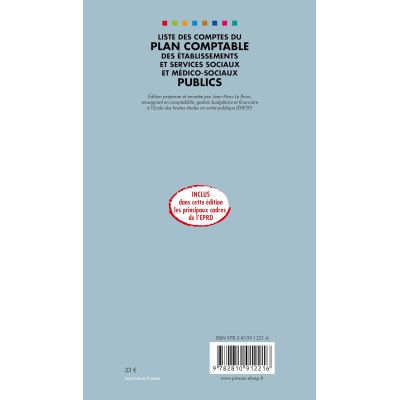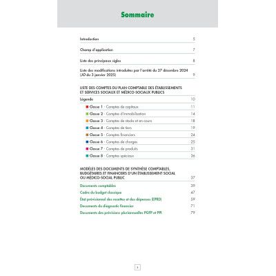 Fascicule en couleurs comprenant :• La liste des comptes du plan comptable des établissements et services sociaux et médicosociaux publics (EHPAD, IME, ESAT, MAS, FAM, FJT…) applicable à compter du 1er janvier 2025 (selon arrêté du 27 décembre 2024) ;• Les principaux modèles de documents de synthèse comptables, budgétaires et financiers d’un ESMS public, ainsi qu’une actualisation des cadres budgétaires ;• Des annotations et indications pratiques de l’auteur complétant certains documents pour faciliter leur consultation et leur compréhension ;• Un repérage par couleur.